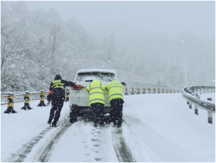 雙江中心大站工作人員推車一公里,護送被困車輛安全駛離高速公路。