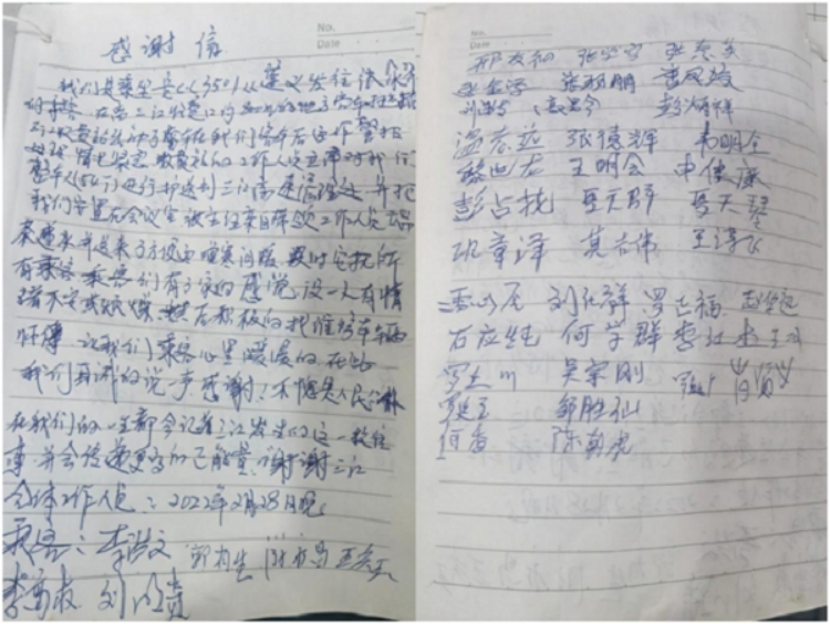 三江管理所、三江中心大站妥善安置57名滯留司乘,收到一封聯名感謝信。