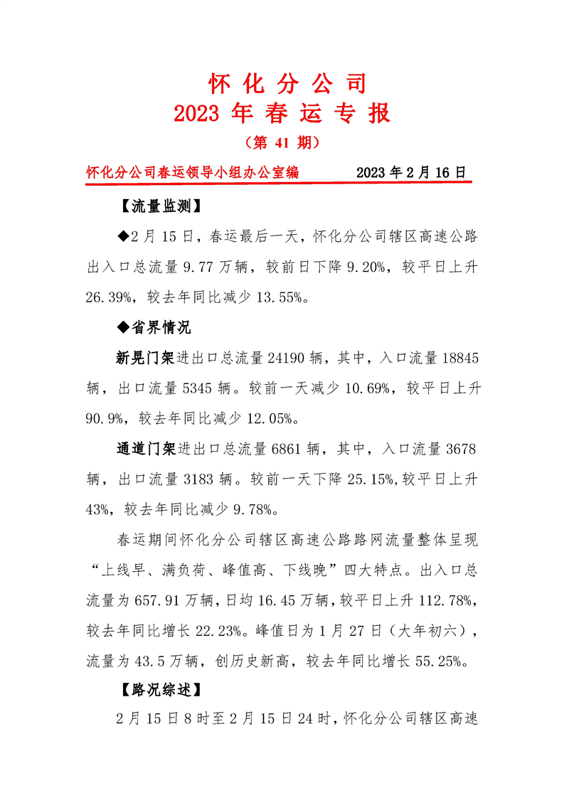 2023年懷化分公司春運專報-第41期