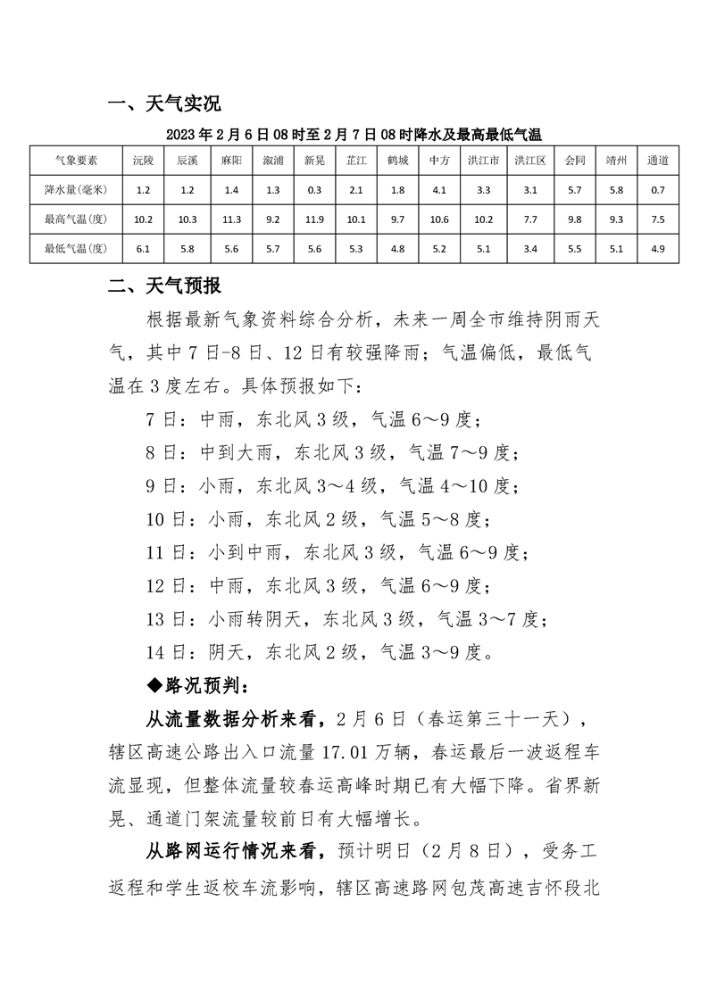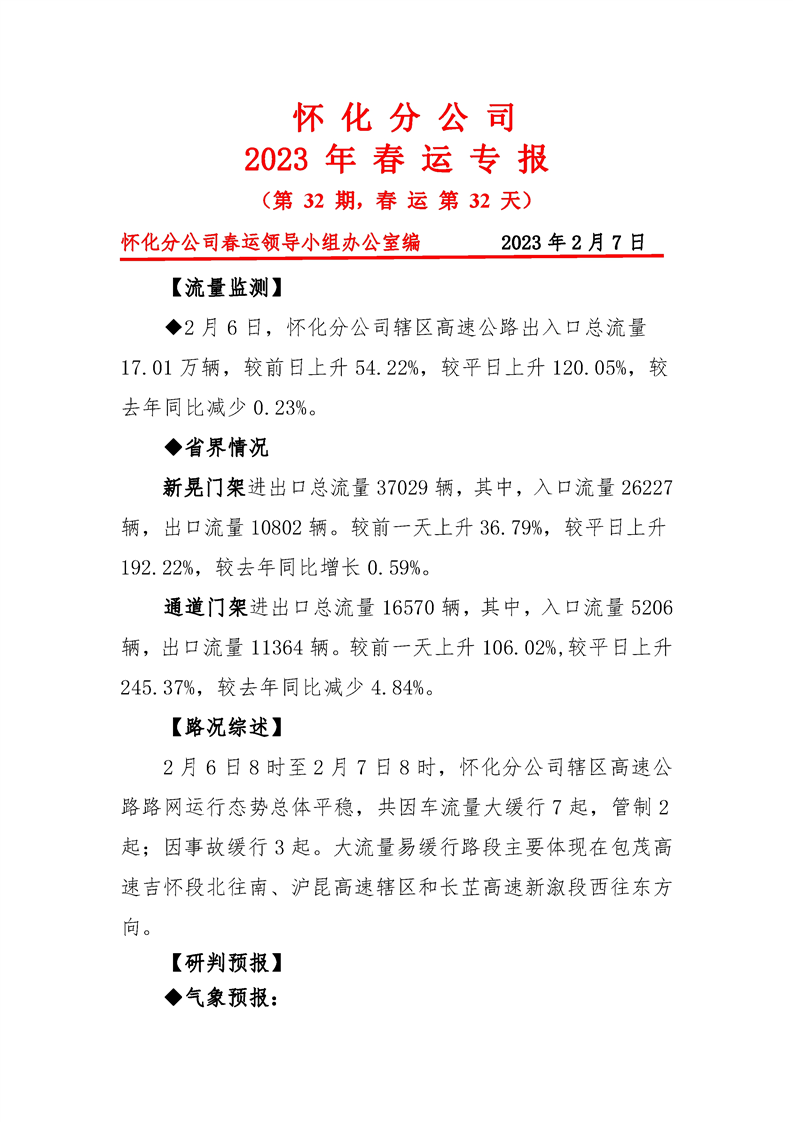 2023年懷化分公司春運專報-第32期