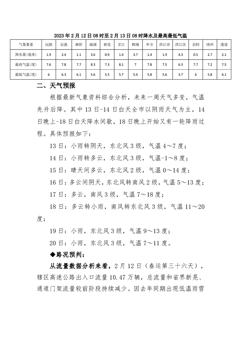 2023年懷化分公司春運專報-第38期