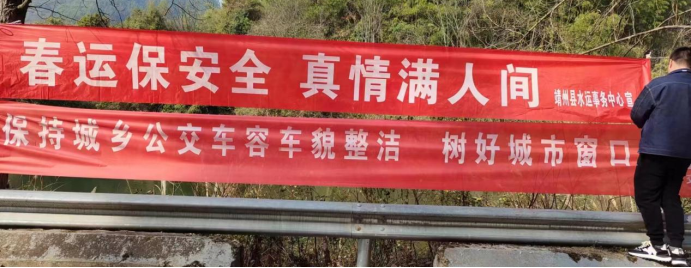 1月10日,靖州縣水運事務中心在多個鄉鎮懸掛水運安全宣傳標語