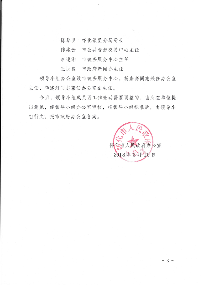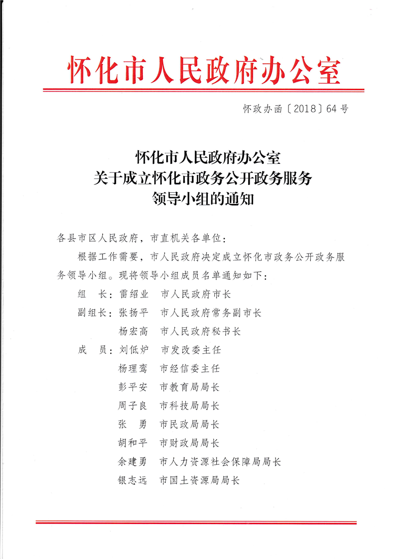 懷化市人民政府辦公室關于成立懷化市政務公開政務服務領導小組的通知