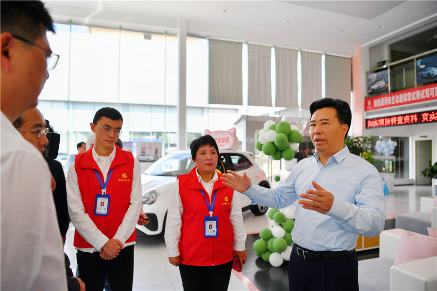 10月16日,市委副書記、市長黎春秋調研第五次全國經濟普查工作開展情況。圖為黎春秋在鶴城區城南街道奧林社區002普查小區懷化瑞宏汽車銷售服務有限公司調研“五經普”開展情況。(懷化日報全媒體記者 張卓 攝)