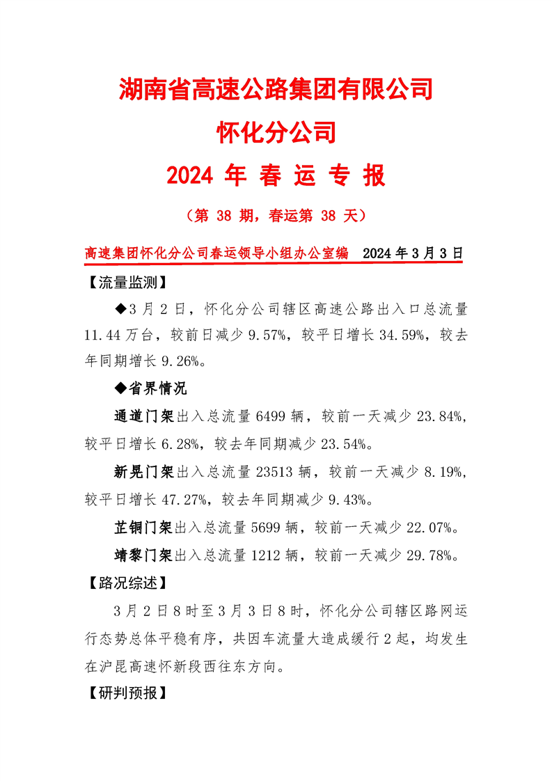 2024年懷化分公司春運專報-第38期
