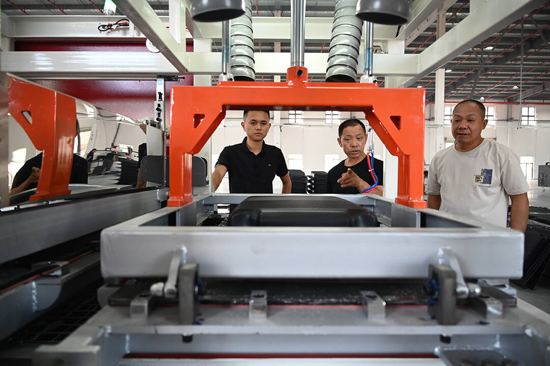 在湖南享懷箱包加工生產基地,一條條現代化的生產線整齊排列著,機器的轟鳴聲此起彼伏。流水線上,工人們熟練地操作著全自動注塑機、全自動縫線機等各種設備,裁剪、縫制、打包等一項項流程有條不紊地進行著。