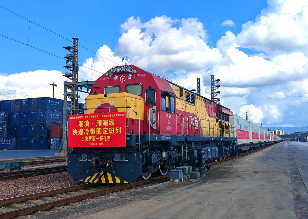 2024年4月1日起,懷化國際陸港中老圖定班列再次提升開行頻率,由原來的每周一列增加到每周三列,極大提高了懷化國際陸港中老線出口貨物外運能力。