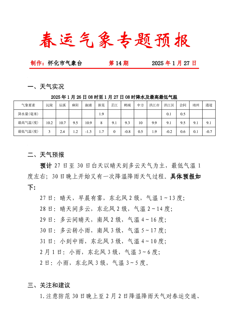 春運(yùn)期間氣象專題預(yù)報(bào)2025012709-014
