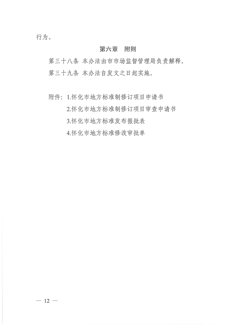 關(guān)于印發(fā)《懷化市地方標(biāo)準(zhǔn)管理辦法》的通知