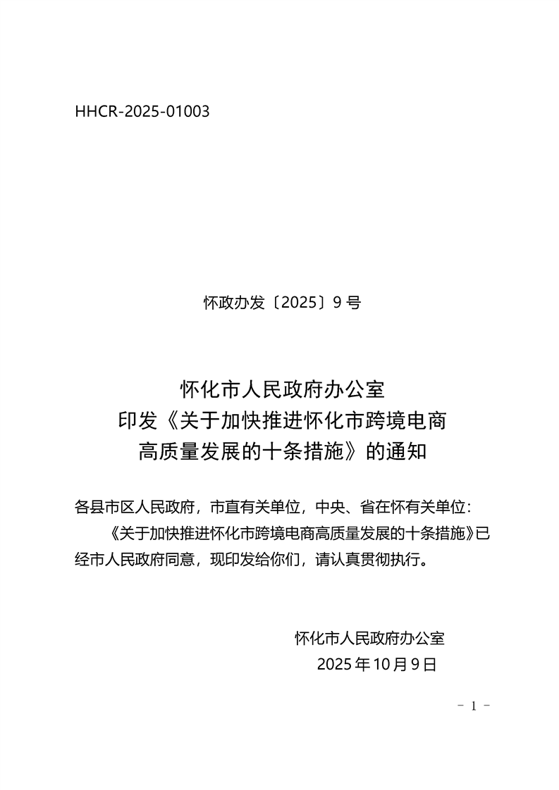 關于印發《關于加快推進懷化市跨境電商高質量發展的十條措施》的通知