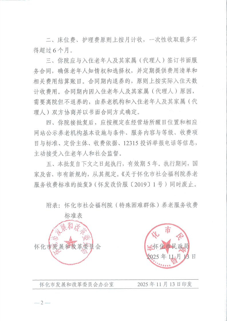 關于懷化市社會福利院(特殊困難群體)養老服務收費標準的批復