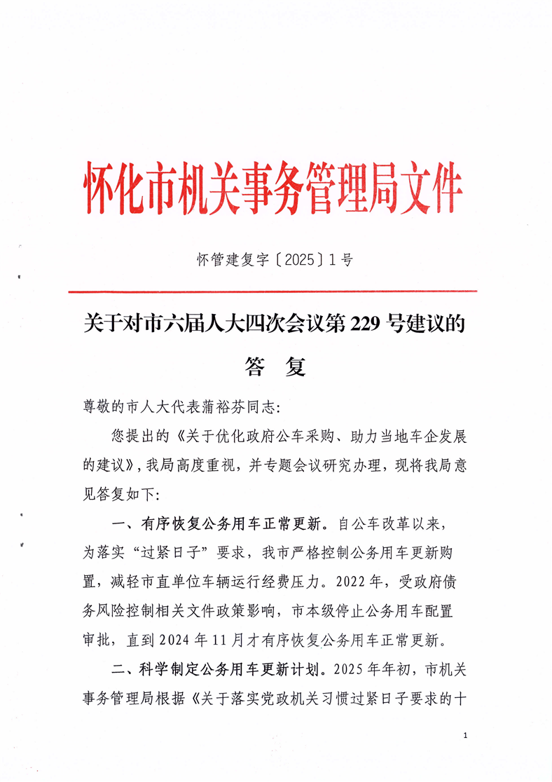 關于對市六屆人大四次會議第229號建議的答復