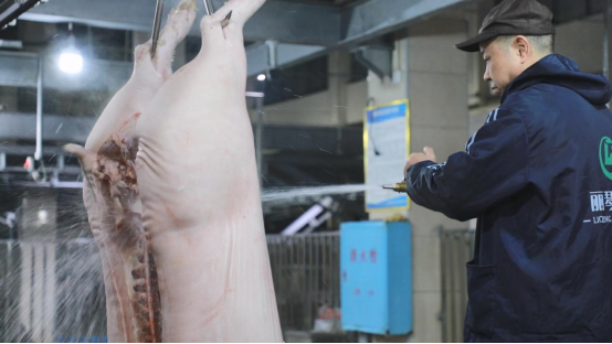 “我們辰溪屠宰場從大年初二的晚上就正式開始屠宰生產,我們廠從生豬入廠到鮮肉出廠,包括檢疫檢驗,每一道工序都是經過嚴格把關,我們每一天的屠宰量大概在500頭左右,我們一定會讓廣大市民吃上安全放心的鮮豬肉?!睉鸦衅匠r副產品公司屠宰廠廠長姚敦勤說道。